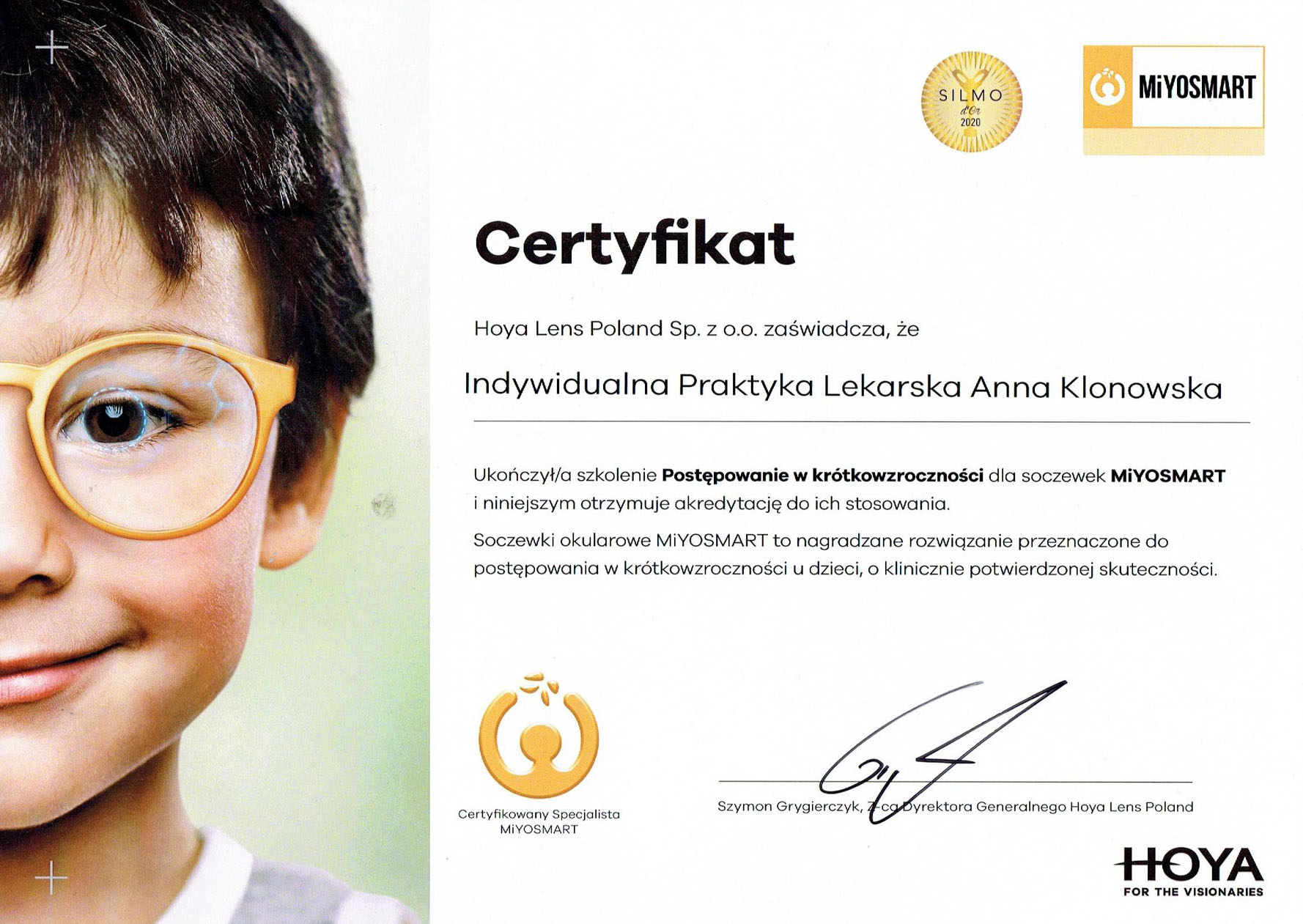 4. Okulary MiyoSmart firmy Hoya ( Defocus Incorporated Multiple Segment Technology)